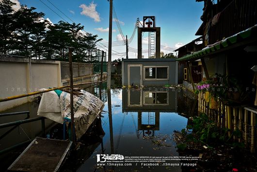 ดูเหมือนเย็นดี มีเตียงน้ำให้นอน แต่น้ำเหม็นมาก ต้องทนนอนและอยู่กับมันแบบนี้ เดินไปไหนไม่ได้ เพราะต้องไปล้างเท้าอีก น้ำสะอาดมีไม่พอ เก็บไว้อาบ บ้านนี้เห็นคุณตากับคุณยายนอนอยู่ 2 คน เห็นเปิดทีวีไว้ นอนหลับ น้ำขึ้นสูงเรื่อย ๆ อดในไม่ได้ที่จะต้องแจ้งให้คุณตาระวังไฟฟ้า เพราะน้ำจะถึงปลั๊กไฟแล้ว...ชุมชนบ้านปูน แขวงบางยี่ขัน เขตบางพลัด