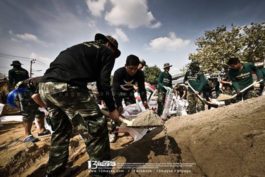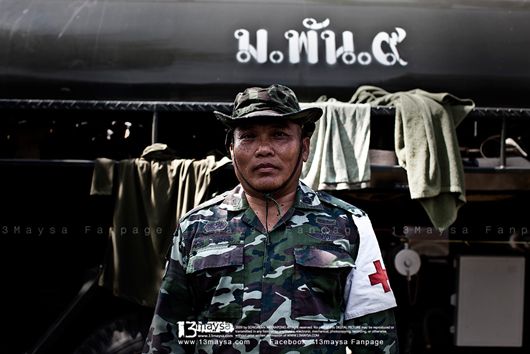 ช่วงน้ำท่วม เราจะเห็นว่าเรามีที่พึ่ง จิตใจเรารู้สึกปลอดภัยขึ้นบ้าง เพราะมีพี่ ๆ ทหารมาช่วยเหลือ ผมเดินทางไปที่พักทหาร ที่สนามกีฬากองทัพบก เพื่อสอบถามและนำอาหารไปแจก และอยากนำข่าวเล็ก ๆ มาฝากประชาชนว่า กองกำลังสำคัญของเรากำลังป่วย จากน้ำสกปรก แต่ก็ยังคงสู้ พวกเขาผลัดกันมานอนรักษาตัวจากการลุยน้ำทั้งวัน เดินทางมาไกลจากทุกมุมของไทย