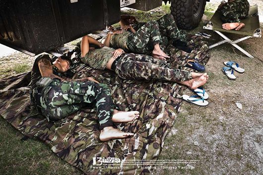 คุณทหารท่านนี้ป่วย ตัวร้อน นอนทานยา อากาศร้อน เหนื่อยเพลียก็หลับได้ อดทน คือทหาร