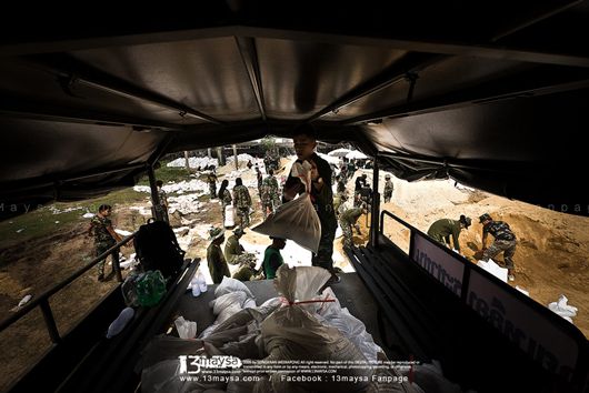 ผมอยู่ในเต้นท์กองอำนวยการย่อยเล็ก ๆ ที่คอยรับข่าวสาร มีโทรเข้ามา จุดนั้นต้องการถุงทรายกี่กระสอบ มีสองพัน ห้าพัน หมื่นสอง เรียกได้ว่า ทหารของเรากรอกกระสอบทรายกันทั้งวันทั้งคืนไม่หยุดกันเลยทีเดียว