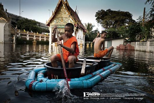 น้ำมาเพื่อสอนเรา เราอย่ายอมแพ้ เดี๋ยวน้ำก็ผ่านไป เราก็ต้องผ่านมันไปให้ได้เช่นกัน หันมามองโลกบวกกันดีกว่า