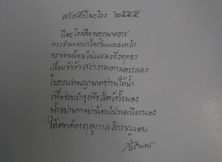 นับเป็นพระมหากรุณาเป็นล้นพ้น ที่พระองค์ทรงมีพระราชทาน ส.ค.ส. และพรปีใหม่ให้กับประชาชนคนไทย ซึ่งประชาชนคนไทยต่างรู้สึกปลาบปลื้มในพระมหากรุณาธิคุณอันล้นพ้นอย่างหาที่สุดมิได้ และขอให้พระองค์ทรงพระเจริญ ยิ่งยืนนานเทอญ