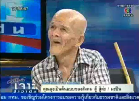 ช่วงเย็นของวานนี้ (15 มีนาคม) รายการเจาะข่าวเด่น ได้ติดต่อขอสัมภาษณ์ไปยังคุณลุงเอี่ยมถึงการบริจาคเงินในครั้งนี้ โดยมีอาจารย์อุดร สิริอาภรณ์ อาจารย์โรงเรียนวัดไร่ขิงวิทยา พร้อมด้วยคุณพรเทพ ปัถวี ไวทยากรวัดไร่ขิง ได้เข้ามาร่วมให้สัมภาษณ์ พร้อมทั้งเป็นล่ามให้คุณลุงเอี่ยม เนื่องจากคุณลุงพิการลิ้นไก่สั้น จึงพูดติด ๆ ขัด ๆ และฟังค่อนข้างลำบาก