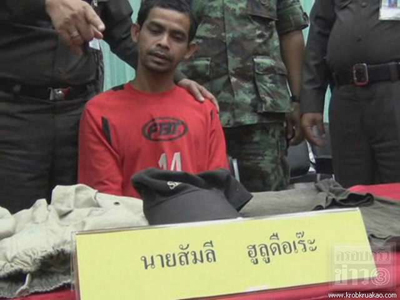 ก่อนหน้านี้ ช่วงเช้า ที่ห้องกองกำกับการตำรวจภูธรจังหวัดปัตตานี เจ้าหน้าที่ตำรวจ สภ.แม่ลาน ได้นำตัวนายสัมลี ฮูลูดือเร๊ะ อายุ 34 ปี อยู่บ้านเลขที่ 36 ม.4 ต.โกตาบารู อ.รามัน จ.ยะลา มาแถลงข่าว หลังจากได้ทำการปิดล้อมตรวจค้นที่บ้านเลขที่ 60/1 ม.4 ต.ม่วงเตี้ย อ.แม่ลาน ซึ่งเป็นบ้านภรรยา และควบคุมตัวนายสัมลีที่กำลังนอนอยู่ภายในบ้าน พร้อมของกลางสายไฟฟ้ายาวกว่า 100 เมตร คีมตัดเหล็ก ตะปู โทรศัพท์มือถือ พร้อมกางเกง 3 ส่วน เสื้อยืดและหมวกแก๊ป