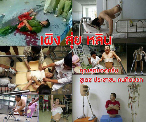 เพื่อน ๆ ครับ วิกฤติและปัญหาที่เกิดขึ้นกับ เพื่อน ๆ ในขณะนี้ หากท่านมองว่า ท่านแย่แบบสุด ๆ แล้ว ผมอยากให้กำลังใจท่านด้วยการ ขอร้องให้ท่านมองไปที่ "เผิงสุ่ยหลิน" ครับ เพราะว่าคงไม่มีใครที่แย่ไปกว่าเขาอีกแล้ว จริงอยู่ร้านของเขาขายดีมาก ๆ แต่มีใครอยากตัวขาดครึ่งตัวบ้างไหมครับ ท่อนล่างไม่เหลือแล้ว ท่านลองคิดดูว่า ความสำคัญของส่วนล่างมันสำคัญขนาดไหนครับ ผู้ชายคนหนึ่งจะใช้ชีวิตอย่างไรกัน ผมไม่อยากจะคิด น้ำตามันจะไหลครับ