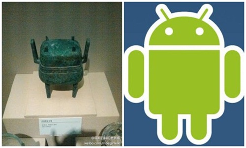 ถ้าได้เห็นภาพนี้ หลาย ๆ คนจะต้องฮาแต่ก็แอบอึ้งในความเหมือน จนต้องตั้งคำถามว่า... หรือว่าโลโก้หุ่นกระป๋องแอนดรอยด์ของทางกูเกิลนั้นได้รับไอเดียมาจากโบราณวัตถุของจีนกันนะ? เนื่องจากวันที่ 17 ตุลาคมที่ผ่านมา เว็บไซต์ micgadget.com เปิดเผยภาพที่นักท่องเว็บชาวจีนรายหนึ่งได้โพสต์ภาพบน SINA Weibo โซเชียลมีเดียของจีน ซึ่งเป็นภาพที่เขานำโลโก้หุ่นกระป๋องแอนดรอยด์สีเขียวเปรียบเทียบกับหม้อ 3 ขา (Tripod Cauldron) วัตถุโบราณจากยุคสำริดที่ตั้งแสดงอยู่ที่พิพิธภัณฑ์ประวัติศาสตร์เมืองฉางซี ทางตอนเหนือของประเทศจีน