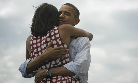 ชาวเน็ตแห่แชร์ภาพโอบามากอดภริยาเกลื่อนเน็ต หลังคว้าชัยเลือกตั้ง