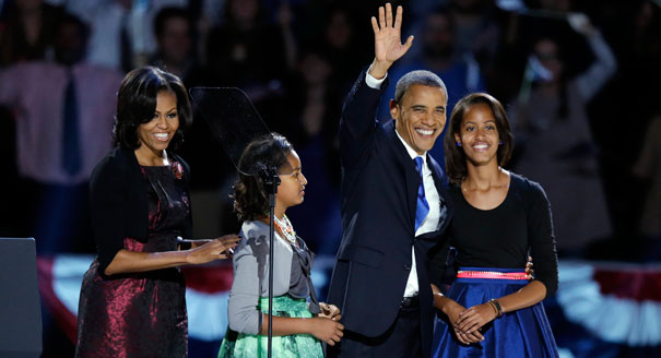 สำนักข่าวบีบีซี รายงานเมื่อวันที่ 7 พฤศจิกายนว่า หลังจากนายบารัค โอบามา ชนะคะแนนเสียงเลือกตั้งประธานาธิบดีอย่างขาดลอยแล้ว เขาก็ได้ควงมิเชล โอบามา สุภาพสตรีหมายเลข 1 ของสหรัฐฯ พร้อมด้วยลูก ๆ ขึ้นกล่าวสุนทรพจน์ที่ศูนย์บัญชาการเลือกตั้งพรรคเดโมแครต นครชิคาโก รัฐอิลลินอยส์ เพื่อขอบคุณประชาชนชาวอเมริกัน และสร้างความเชื่อมั่น พร้อมขอให้ประชาชนเดินไปข้างหน้าด้วยกัน และมีความหวังต่ออนาคต