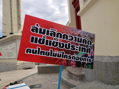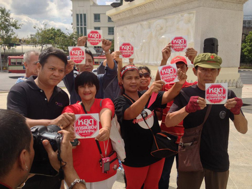 อย่างไรก็ตาม วันนี้ (18 พฤศจิกายน) เมื่อเวลา 11.00น. ที่บริเวณอนุสาวรีย์ประชาธิปไตย ได้มีกลุ่มนิสิต-นักศึกษารักประชาธิปไตย (นนปช.) รวมตัวกันประกาศต้านการแช่แข็งประเทศไทย ของ เสธ.อ้าย นอกจากนี้ ทางกลุ่มดังกล่าวยังแจกสติ๊กเกอร์ "หยุดการแช่แข็งประเทศไทย" ให้กับประชาชนบริเวณถนนราชดำเนินด้วย รวมทั้งระบุว่า หากมีการปฏิวัติ-รัฐประหาร จะมีกลุ่มนิสิต-นักศึกษา รวมทั้งประชาชนจำนวนมากออกมาต่อต้านการกระทำดังกล่าวแน่นอน และขอเชิญชวนประชาชนที่ไม่เห็นด้วยกับแนวคิด ม็อบ เสธ.อ้าย ดังกล่าวติดริบบิ้นเขียว หรือเปิดไฟหน้ารถ เพื่อเปิดไฟเขียวประเทศไทยเดินหน้าต่อไป