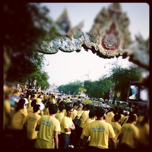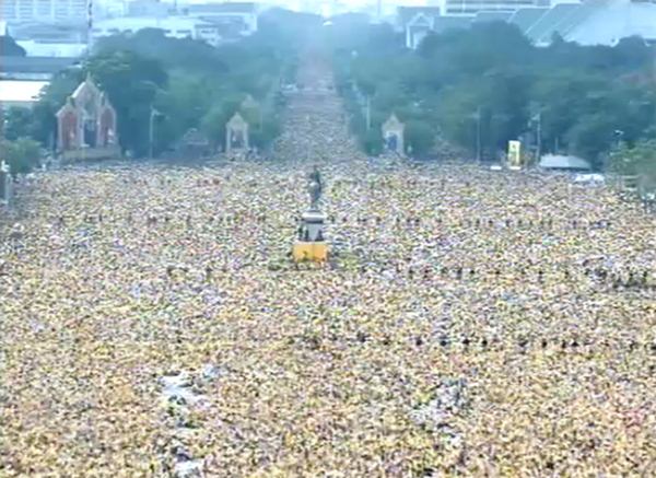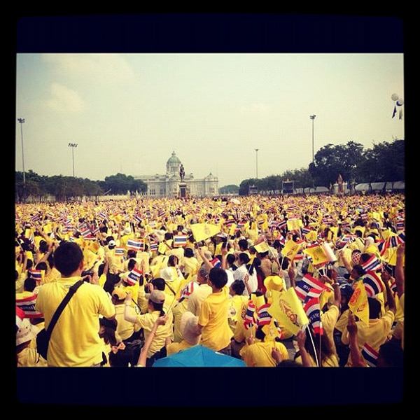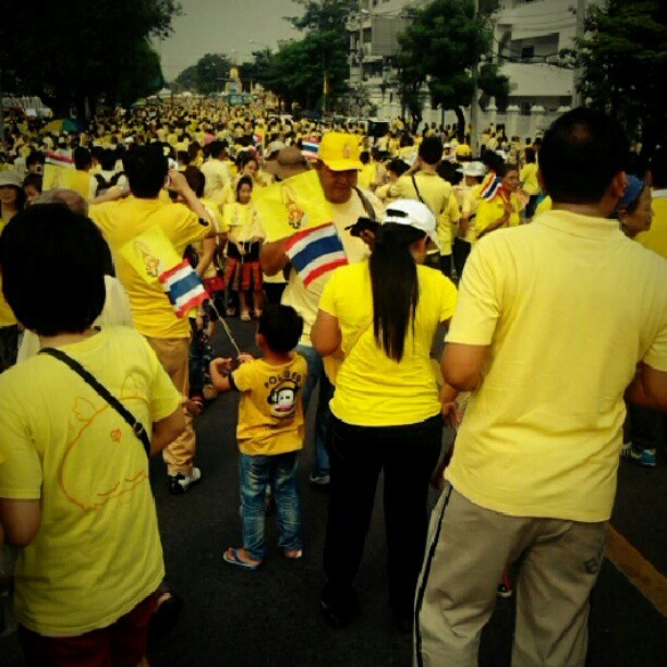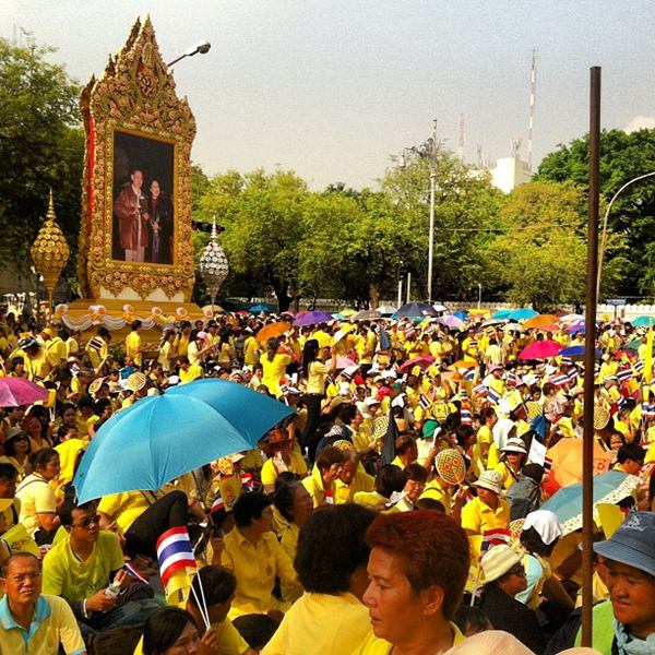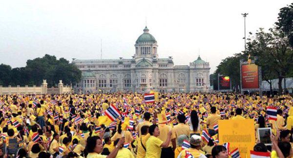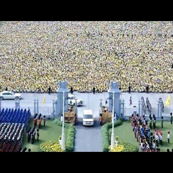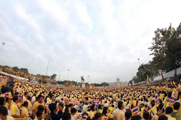 รายงานของเอพี ระบุว่า พระบาทสมเด็จพระเจ้าอยู่หัว ภูมิพลอดุลยเดช เสด็จออก ณ สีหบัญชร พร้อมพระบรมวงศานุวงศ์ สร้างความปลื้มปีติให้กับประชาชน ที่มารอเฝ้าฯ รับเสด็จ ซึ่งล้วนสวมเสื้อเหลือง โบกธงตราสัญลักษณ์สีเหลือง และธงชาติ