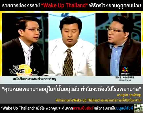 ขณะที่เมื่อวันศุกร์ ที่ 11 มกราคมที่ผ่านมา ในรายการ Wake Up Thailand รายการเล่าข่าวทางสถานีโทรทัศน์ Voice Tv ที่ดำเนินรายการโดย ม.ล.ณัฏฐกรณ์ เทวกุล, นายชูวัส ฤกษ์ศรีสุข และนายศิโรตม์ คล้ามไพบูลย์ ได้หยิบหนังสือพิมพ์ไทยโพสต์มาวิจารณ์ถึงข่าวดังกล่าว โดยนายศิริโรตม์ กล่าวว่า ตนไม่เชื่อว่าใครจะไร้มนุษยธรรมขนาดนั้น แต่เห็นว่าเป็นปัญหาเรื่องการสื่อสารระหว่างบุคลากรทางการแพทย์กับผู้ป่วย ซึ่งเป็นเรื่องคลาสสิก เช่น เวลาคุณไปหาหมอ และก็คุยนานเกินไป ไม่ยอมรักษาเสียที และหมอกับคนไข้ทะเลาะกันเยอะ