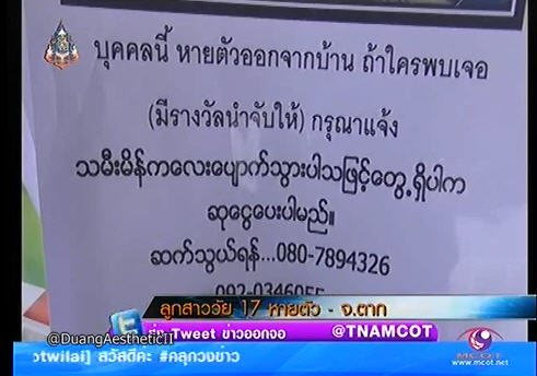 เมื่อวันที่ 2 ตุลาคม 2556 รายการคลุกวงข่าว ทางช่อง 9 โมเดิร์นไนน์ทีวี รายงานว่ามีคุณพ่อคนหนึ่งเข้าแจ้งความกับเจ้าหน้าที่ตำรวจ หลังลูกสาววัย 17 ถูกหนุ่มในอินเทอร์เน็ตล่อลวง หายตัวไป 5 วันแล้ว