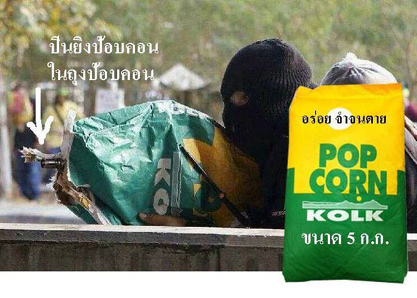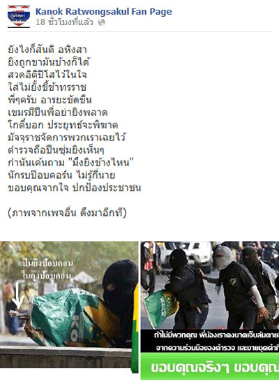 เมื่อวันที่ 4 กุมภาพันธ์ 2557 ที่เฟซบุ๊ก Kanok Ratwongsakul Fan Page ของนายกนก รัตน์วงศ์สกุล พิธีกรข่าวและผู้บริหารเครือเนชั่น ได้โพสต์คำกลอนขอบคุณชายชุดดำในเหตุการณ์ปะทะหลักสี่ โดยใช้ถุงข้าวโพด หรือถุงป๊อปคอร์น ปกปิดอาวุธสงครามสาดกระสุนใส่กลุ่มผู้สนับสนุนเลือกตั้ง เมื่อช่วงเย็นวันที่ 1 กุมภาพันธ์ 2557 ดังนี้