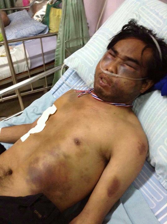 กลายเป็นประเด็นวิพากษ์วิจารณ์ทั่วโลกไซเบอร์เลยทีเดียว สำหรับภาพชายคนหนึ่งได้รับบาดเจ็บ หน้าตาบวมปูด ลำตัวเขียวช้ำ นอนรักษาตัวอยู่ที่โรงพยาบาล ซึ่งมีริบบิ้นลายธงชาติอยู่ที่ลำคอ ทำให้ชาวเน็ตต่างตั้งข้อสังเกตว่า ชายคนดังกล่าวอาจจะเป็นหนึ่งในผู้ชุมนุม กปปส. และถูกทำร้ายร่างกาย