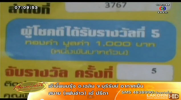 โดยผู้โชคดีคือ นายพูน กุลธานี ได้เดินทางไปยังโรงพักหนองหงส์ จ.บุรีรัมย์ เพื่อแจ้งความบันทึกเป็นหลักฐานเพื่อป้องกันกลุ่มมิจฉาชีพและป้องกันการถูกจับเรียกค่าไถ่ เพราะตอนแรกเข้าใจว่าเป็นทองคำหนัก 1,000 บาท