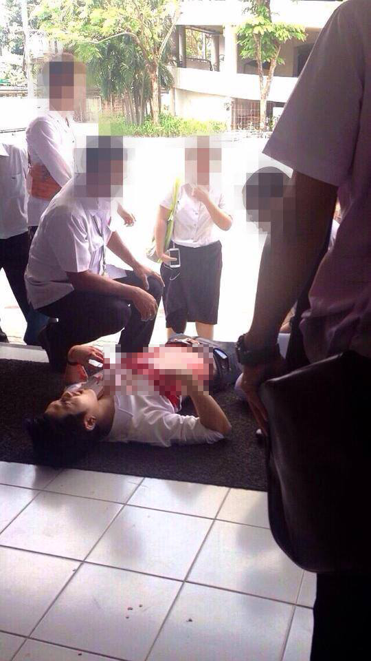 ในเฟซบุ๊กระบุด้วยว่า ก่อนเกิดเหตุไม่กี่วัน นักศึกษาชายได้เข้าไปคุยกับสาวทอมซึ่งเป็นเพื่อนเรียนในห้องเดียวกันว่า ไปกินข้าวกับแฟนเก่าเขามาเหรอ ทำให้สาวทอมไม่พอใจต่อยนักศึกษาชาย ภายหลังอีก 5 วัน ก็เกิดเรื่องขึ้น เมื่อสาวทอมนำมีดมาแทงเข้าที่หน้าอกของนักศึกษาชาย 4 ที จนได้รับบาดเจ็บสาหัส ทำให้เพื่อนต้องรีบนำตัวนักศึกษาชายส่งโรงพยาบาลกระทั่งมาเสียชีวิตในช่วงเช้าวันที่ 13 มีนาคม ส่วนสาวทอมได้หลบหนีไป ทางญาตินักศึกษาชายจึงได้ไปแจ้งความไว้ที่ สน.ทุ่งสองห้อง แต่ขณะนี้ยังไม่สามารถจับตัวผู้ก่อเหตุได้