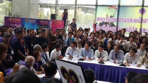 กปปส. ถึงการบินไทย พนักงานแห่ต้อนรับพรึ่บ