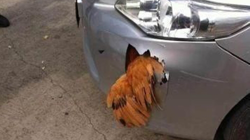 ไก่เหล็กชัด ๆ ชายจีนขับรถชนไก่ไม่ตาย แต่ทำรถเป็นรูโหว่