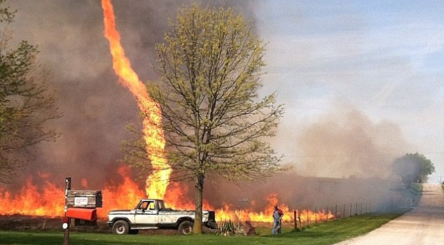 ทอร์นาโดไฟก่อตัวสูงหลายสิบเมตรในสหรัฐฯ