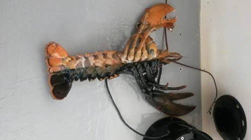 หนุ่มอเมริกันพบกุ้งแปลก สีดำ-ส้ม ผ่าครึ่งซีก