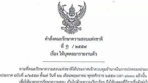 18 รายชื่อ รมต.รักษาการ ถูกเรียกรายงานตัว ตามประกาศ คสช. ฉบับ 1