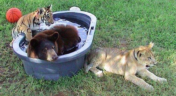 ชมภาพสุดอบอุ่นของ 3 เพื่อนซี้ หมี เสือ สิงโต