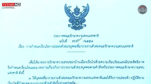ประกาศฉบับที่ 39 กำหนดเงื่อนไขปล่อยตัวผู้มารายงานตัวต่อ คสช.