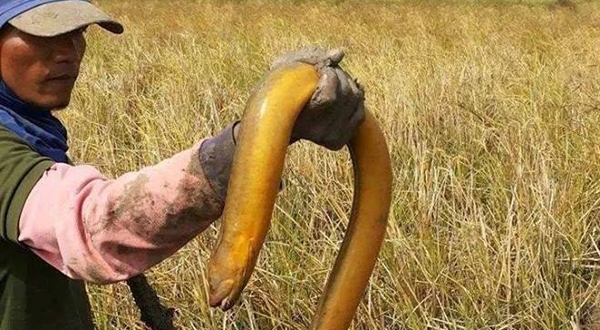 ชาวเน็ตฮือฮา ปลาไหลยักษ์สีเหลือง ที่อุดรธานี