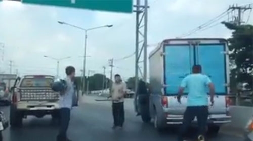 คลิปบ้านป่าเมืองเถื่อน ตีกันยับ กลางถนนเลียบคลองรังสิต