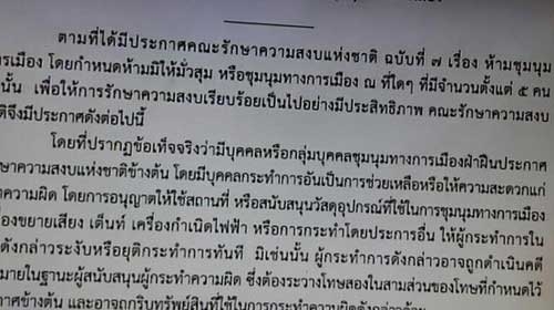 คสช. ประกาศฉบับ 49 ห้ามสนับสนุนชุมนุมทางการเมือง