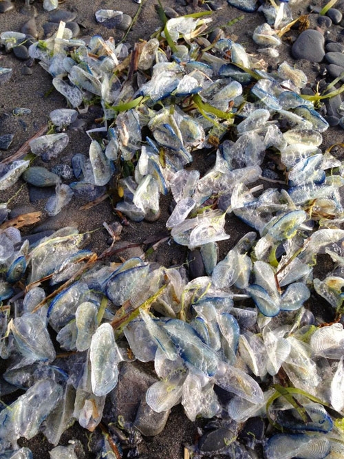 แมงกะพรุนเรือใบนับล้าน ถูกพัดเกยตื้น เปลี่ยนหาดเป็นสีม่วงพร้อมส่งกลิ่นเหม็น