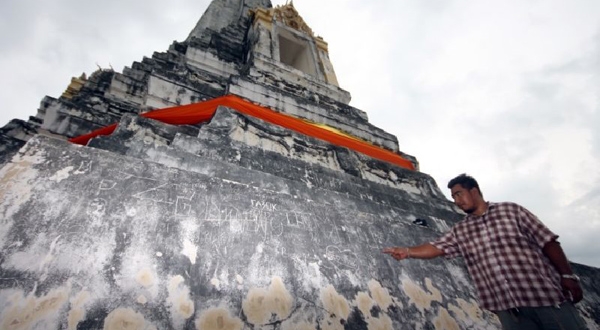 เจดีย์ภูเขาทอง จ.พระนครศรีอยุธยา ถูกขีดเขียน วอนหยุดทำ