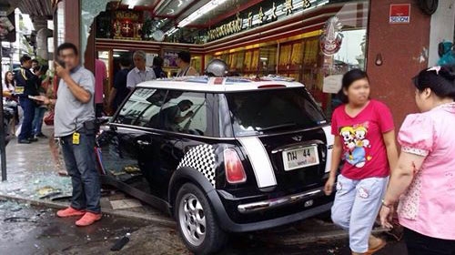 หนุ่มโรคประจำตัวกำเริบ ขับเก๋งมินิคูเปอร์พุ่งชนร้านทองแม่ทองใบ