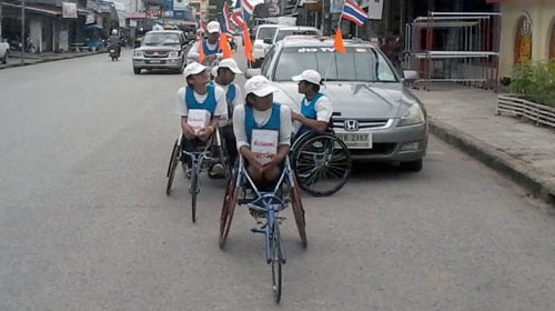 นักกีฬาวีลแชร์เรสซิ่ง เข็นรถเร่ขอเงินบริจาคซื้ออุปกรณ์แข่งขัน