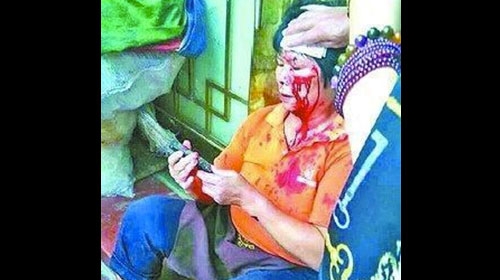 หญิงจีนลัดคิวเข้าห้องน้ำ เจอสั่งสอน โดนอิฐฟาดหัวเลือดอาบ