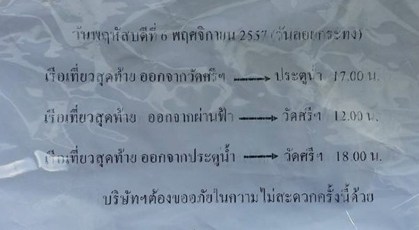 เรือโดยสารคลองแสนแสบ ปรับแผนเดินเรือวันลอยกระทง