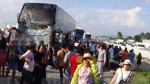 รถทัวร์ชนรวด 6 คันซ้อนที่ชลบุรี นักท่องเที่ยวจีนเจ็บระนาว