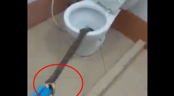 งูเห่าโผล่ส้วม กู้ภัยดึงให้เห็นจะจะ ตัวยาวเฟื้อย