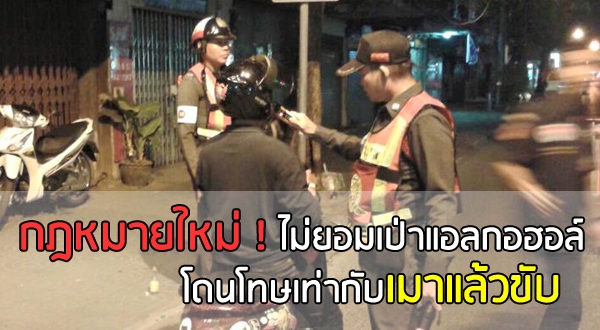 กฎหมายใหม่ ไม่ยอมเป่าแอลกอฮอล์ โดนโทษเท่ากับเมาแล้วขับ