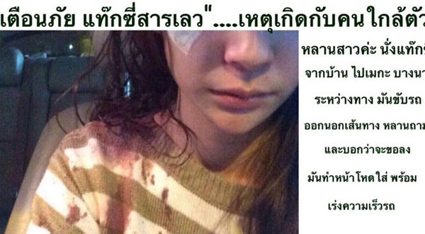 เตือนภัย แท็กซี่ขับออกนอกเส้นทาง สาวใจเด็ดเปิดประตูรถโดดหนี
