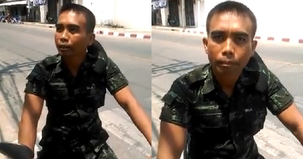 ทหารหนุ่มโชว์กร่าง ปะทะคารมตำรวจ บอกมีหมวกกันน็อกแต่ไม่สวม