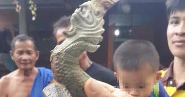 แชร์ว่อนร้อยเอ็ด ทอดแหเจอ ลูกพญานาค-เพจดังชี้ แค่รูปปั้นสำริด