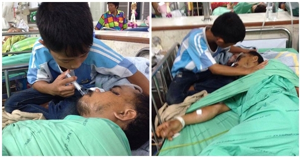 เจ้าหนูยอดกตัญญู คอยป้อนยา-เฝ้าพ่อป่วย เพียงลำพัง
