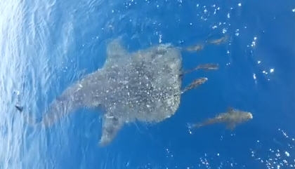คลิปชัด ๆ ฉลามวาฬ โผล่ว่ายน้ำใกล้เรือกลางทะเลอ่าวไทย ที่สายบุรี