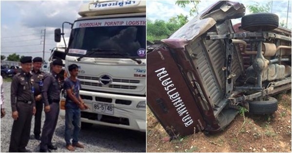 คนขับรถพ่วงจอมตบเบียดรถตำรวจคว่ำโดนจับแล้ว เจอข้อหา 2 เด้ง