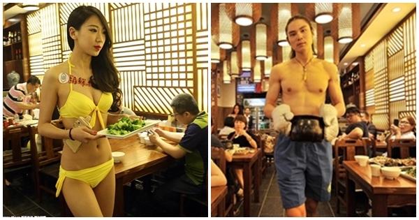 อู้วว ทีเด็ดร้านข้าวต้มจีน มีบริกรหนุ่มสาวนุ่งบิกินี่-เปลือยอก เดินเสิร์ฟอาหาร