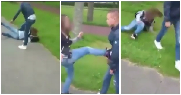 เลวสมบูรณ์แบบ หนุ่มวัยรุ่นคึกคะนอง ปรี่เตะขาสาวล้มฟาดพื้น