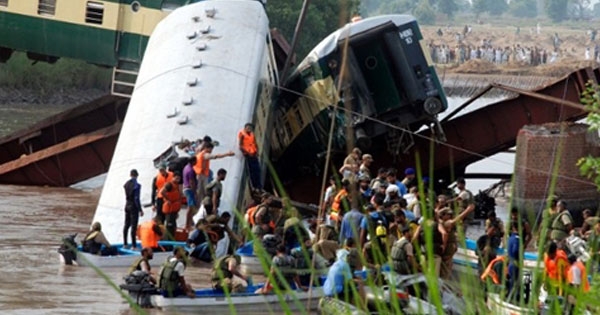 รถไฟขนทหารปากีสถาน ตกสะพานพุ่งลงน้ำ ดับ 12 นาย