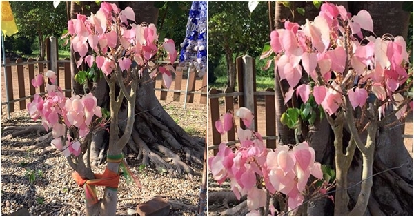 ต้นโพธิ์สีชมพูโผล่เมืองจันท์ ชาวบ้านเชื่อเป็นต้นไม้ศักดิ์สิทธิ์ มีแค่ 1 ในล้าน