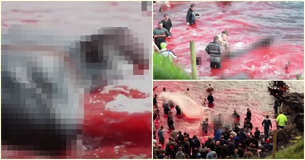 เปิดภาพสลด น้ำทะเลสีเลือด จากเทศกาลล่าวาฬ บนหมู่เกาะแฟโร
